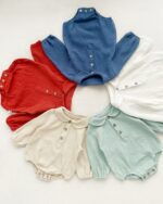 Si vous aimez les pièces authentiques et ayant une âme, nul doute que vous apprécierez ce modèle en gaze de coton qui sera parfait pour une petite fille ou un petit garçon. Ses boutons en bois et sa matière douce et résistante en font une pièce de caractère qui fera l'unanimité à la maison !