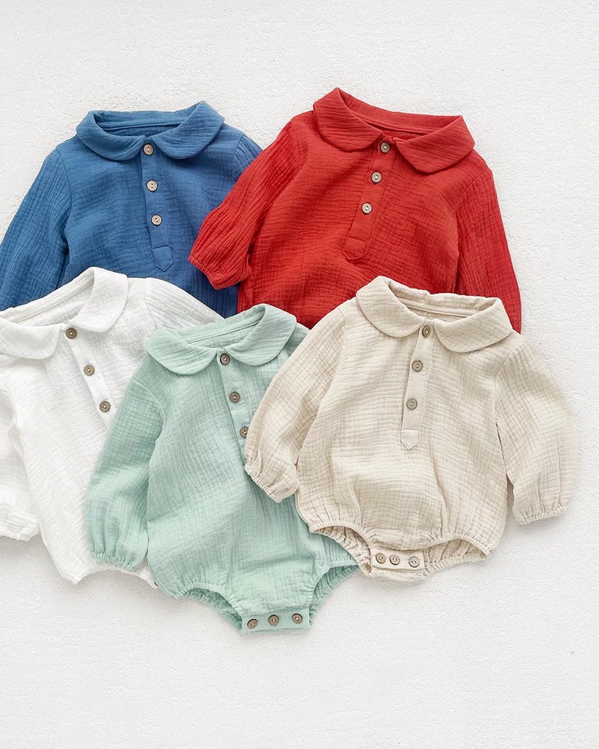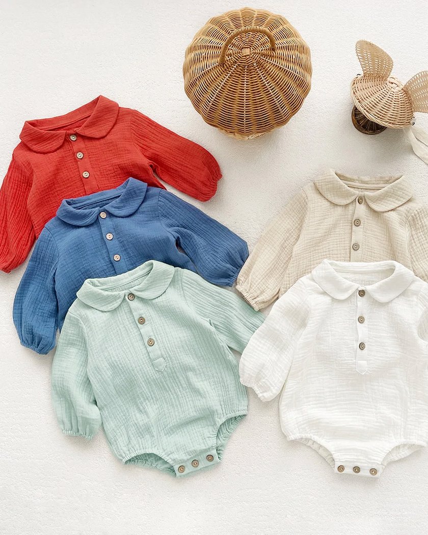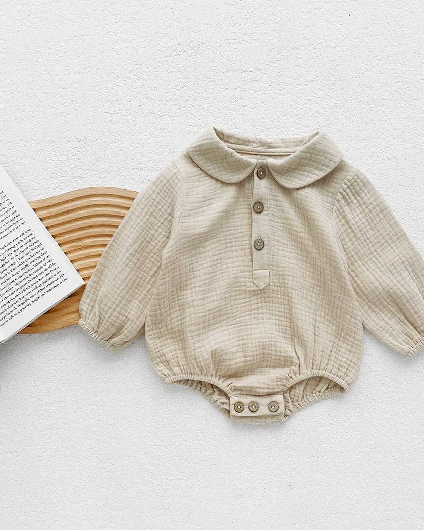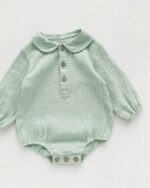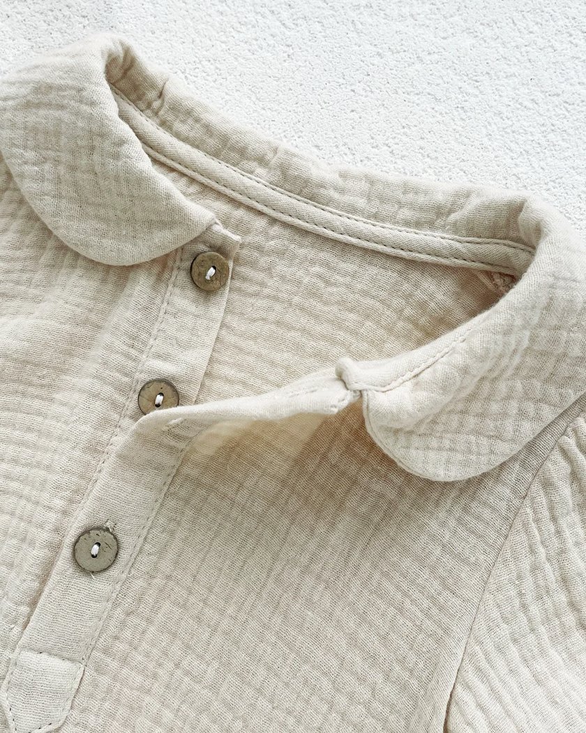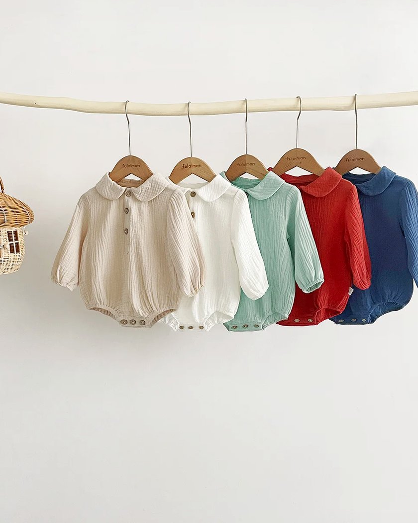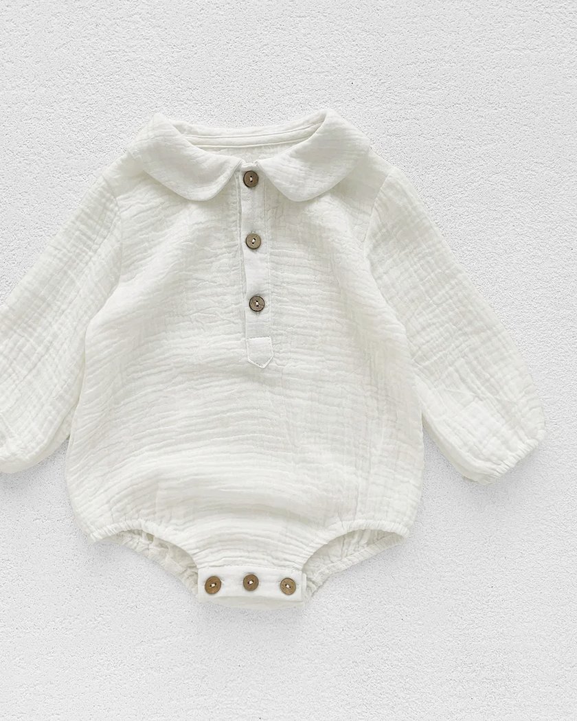 Manipuler un nouveau-né n’est pas toujours évident. Grâce à ce superbe body polo en gaze de coton à encolure large, le change sera plus facile ! L’encolure pourra être ouverte en grand grâce aux nombreux boutons en bois, ce qui vous permettra de passer sans crainte la tête de votre bébé. Vous allez l'adorer !