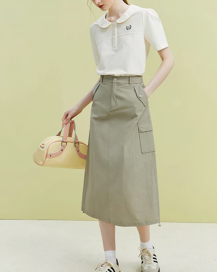Ce polo femme chic col claudine est un vêtement fabriqué avec des matières de grande qualité comme le coton respirant et doux à porter à même la peau. Le col claudine et les manches légèrement bouffantes ajoutent à l'élégance de ce polo une dimension vintage cependant contre balancée par le design court et l'arrondi du bas très tendance.