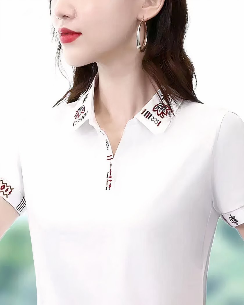Ce polo femme chic slim coton brodé est un vêtement de grande qualité respirant, et à séchage rapide. Conçu pour le printemps et l'été, il vous sera très utile si vous le portez dans le cadre du sport en vous gardant fraîche. Ses atouts séduction sont aussi les parties brodées avec finesse et beaucoup de goût : elles rendent ce polo unique et très élégant.
