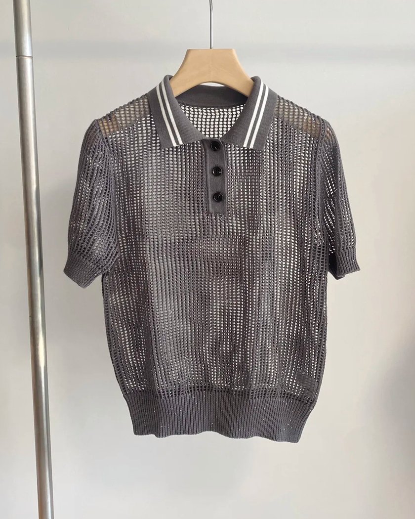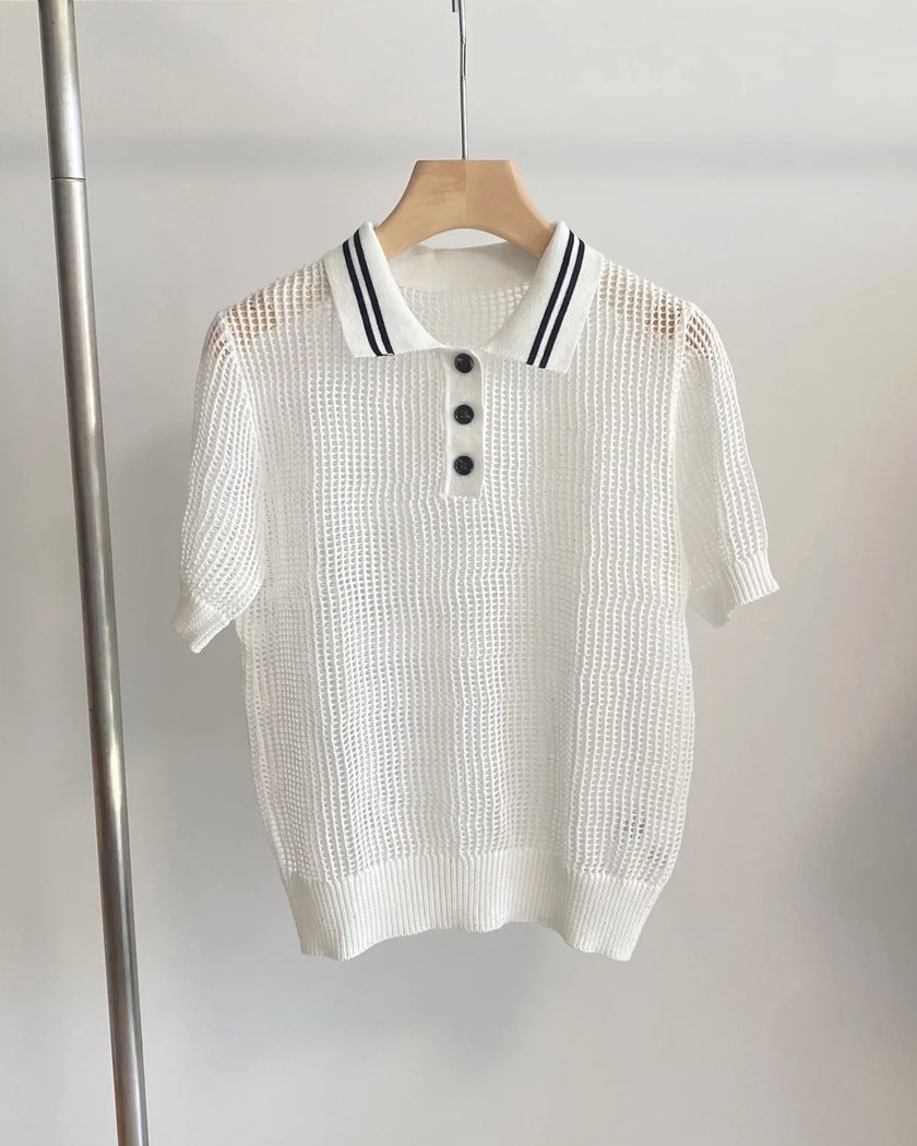 Notre polo femme chic en lin et soie est conçu avec des matières de qualité et un design aux finitions impeccables pour vous donner entière satisfaction. Il existe en deux couleurs et est doté d'un col bicolore : ce dernier est agrémenté de deux fines rayures en son milieu, de couleur différente du polo mais identique aux boutons. Le polo blanc est rayé noir et le polo gris possède des rayures blanches pour un contraste qui ajoute encore au chic du modèle.