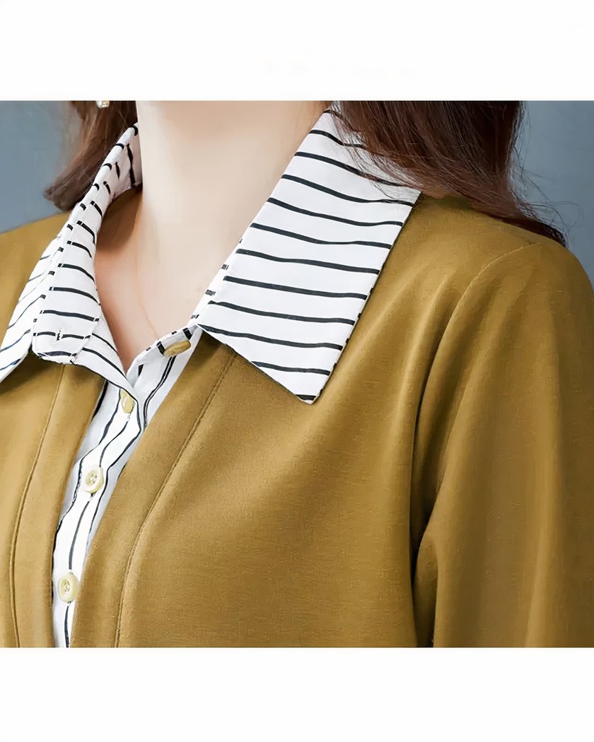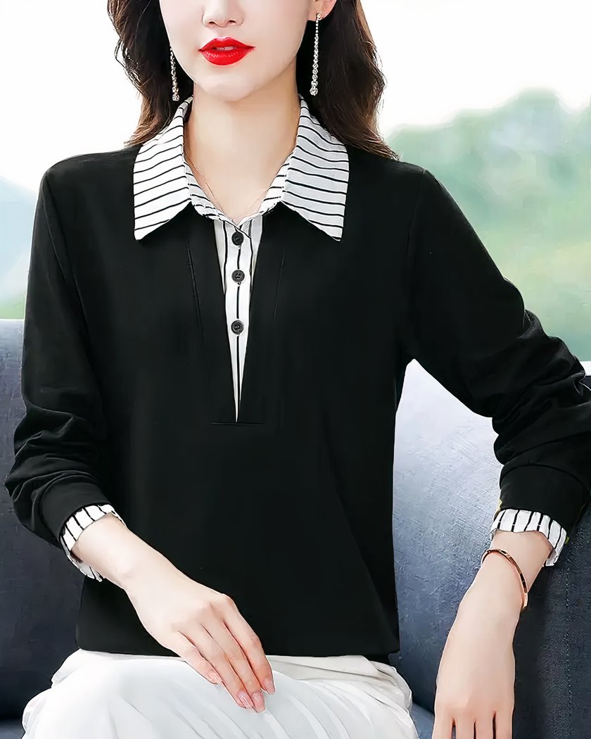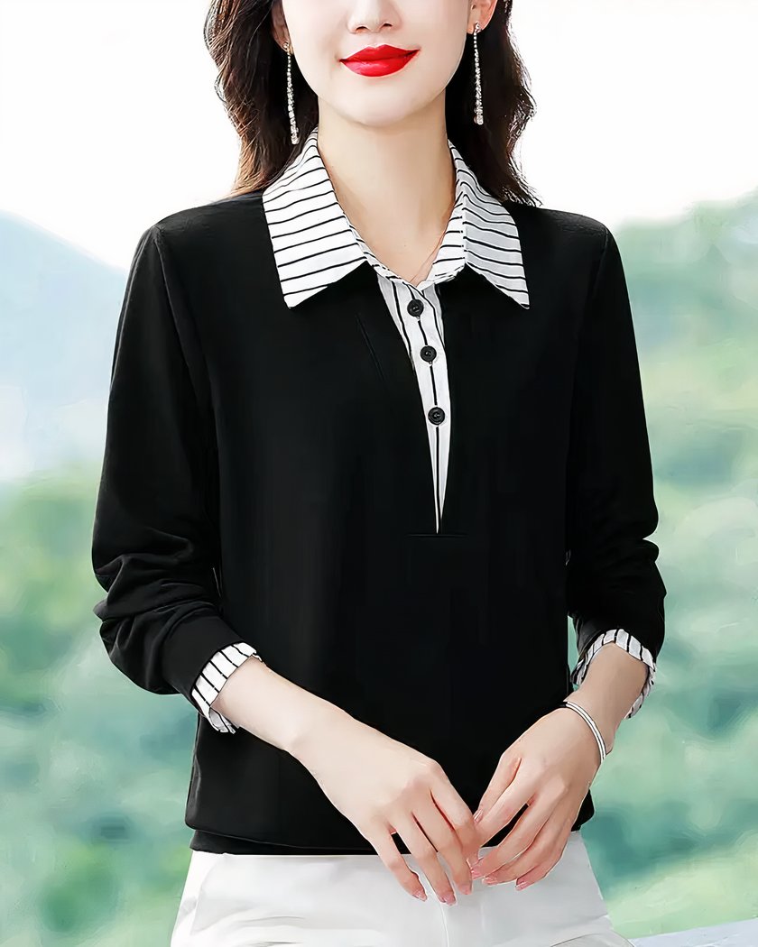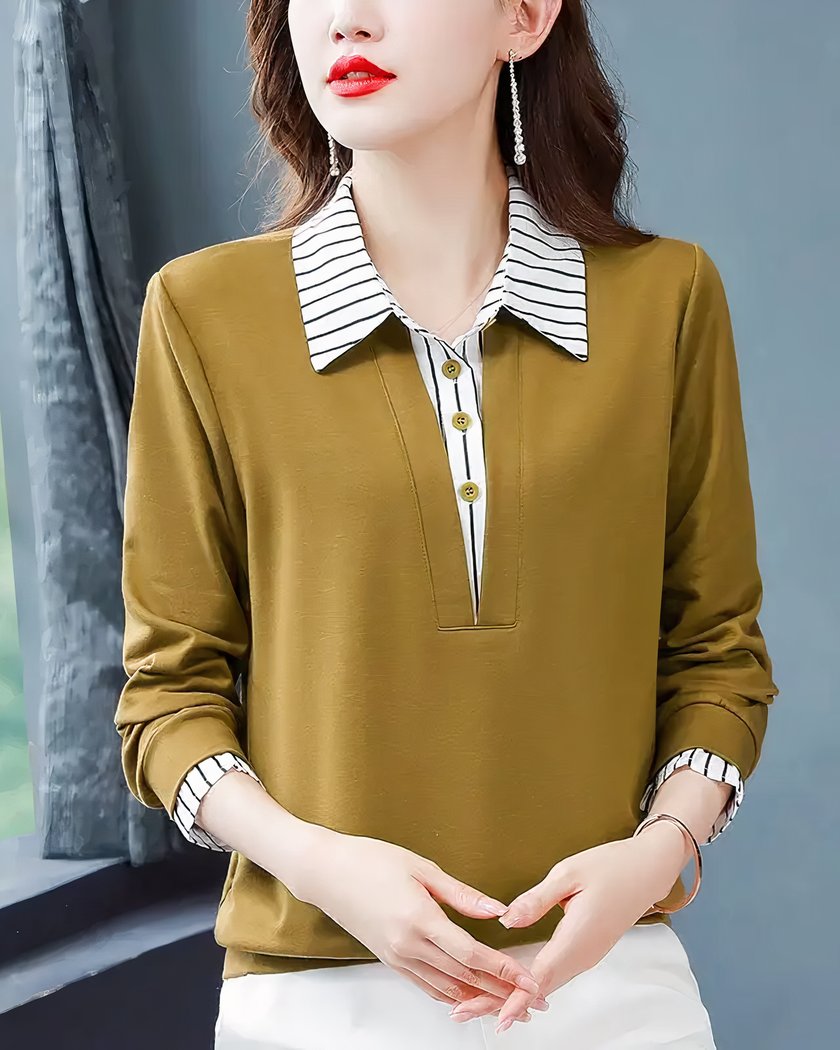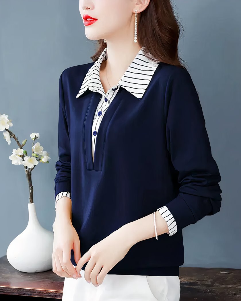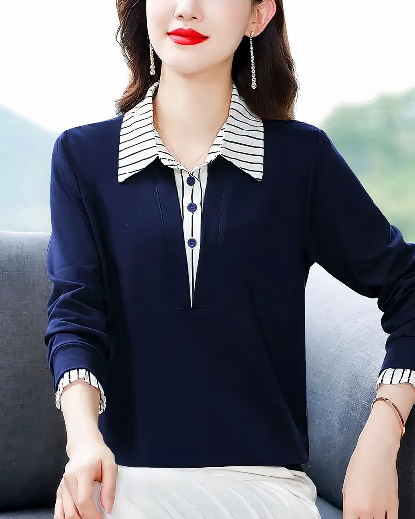 Ce polo femme chic manches longues et rayures est conçu pour l'été et le printemps dans une matière respirante et respectueuse de l'environnement. Le motif rayé au col ainsi qu'au bout des manches l'est également sur la patte de boutonnage qui forme un grand V. Les rayures de couleur assortie au polo donnent à l'ensemble une allure sophistiquée et intemporelle.