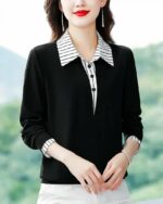 Ce polo femme chic manches longues et rayures est fabriqué avec le plus grand soin et bénéficie de finitions soignées. son design original élégant vous permettra de vous démarquer en restant chic en toutes occasions. Confortable car légèrement extensible, il se portera en journée comme en soirée accordé à vos jupes ou pantalons afin de parfaire votre look.