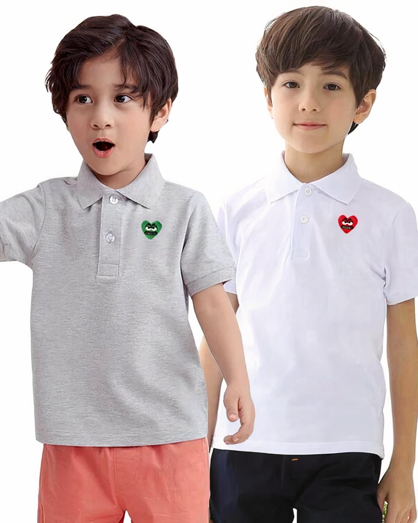 Plongez dans le monde de l'élégance et de la douceur avec notre polo à manches courtes, spécialement conçu pour les jeunes garçons âgés de 2 à 7 ans. Notre polo en coton incarne le parfait équilibre entre confort et style, avec une touche romantique ajoutée par un adorable dessin en forme de cœur brodé.
