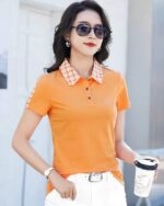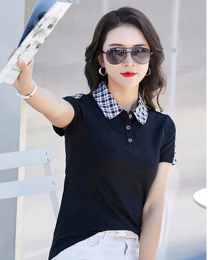 Ce polo de golf col à carreaux pour femme est un polo en coton de qualité. Il bénéficie de finitions soignées : on note le col à carreaux et la bande sur l'épaule qui apportent une grande élégance. Les boutons sont jolis et travaillés et la double patte ainsi que l'ourlet sont cousus soigneusement et avec précision.
