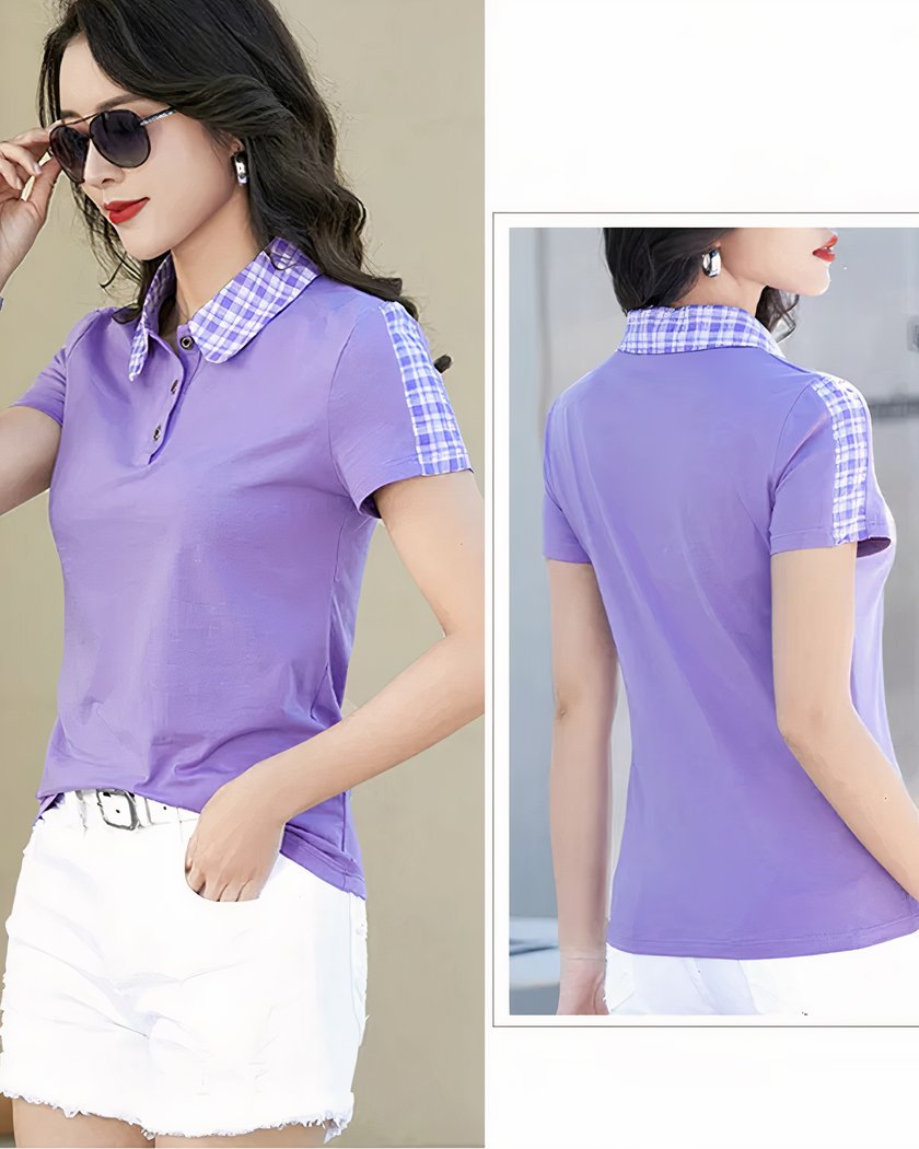 Ce polo de golf col à carreaux pour femme est doté d'une coupe droite et la longueur des manches est parfaite. Pendant la pratique du sport, le coton est parfait pour l'absorption de l'humidité, et il est doux au contact de la peau : le confort est hyper important en sport, et encore plus au golf qui demande beaucoup de temps.