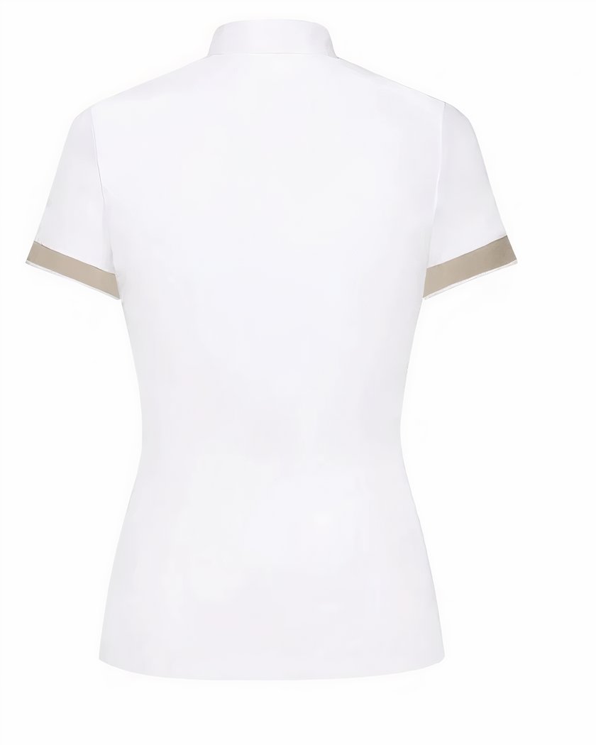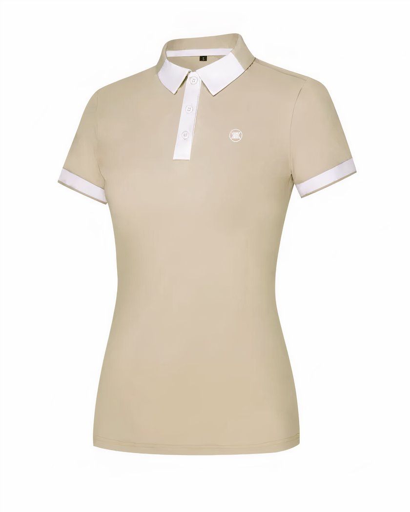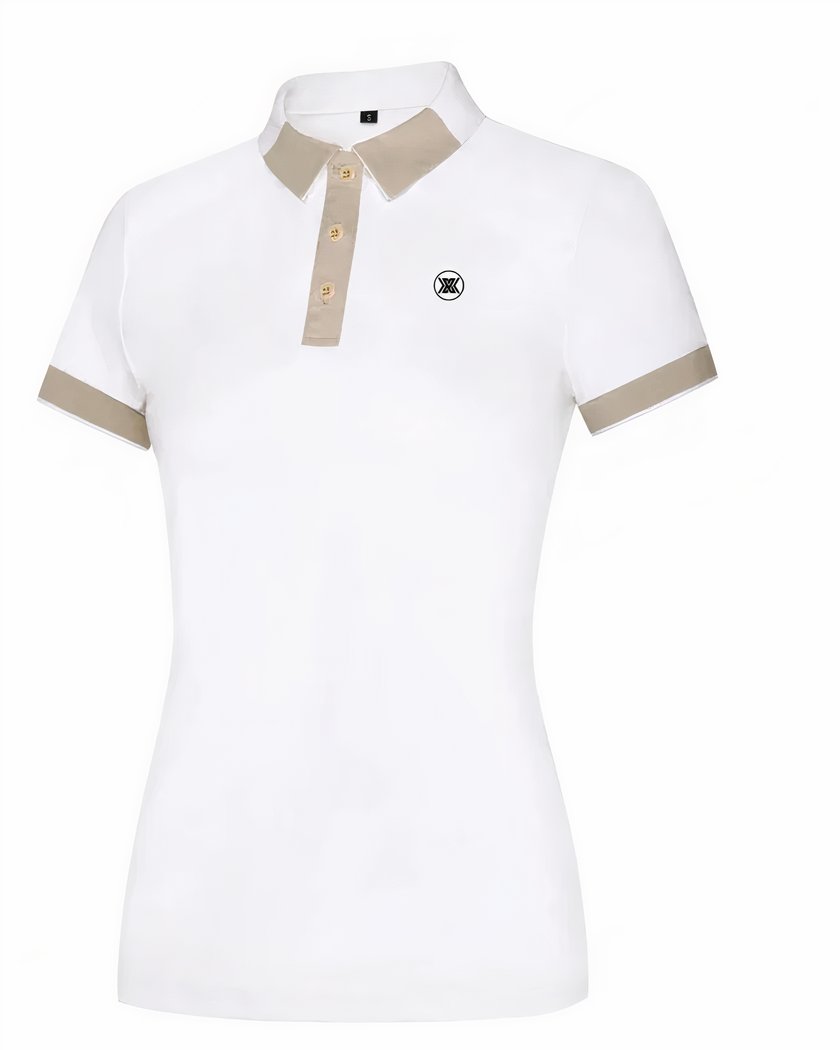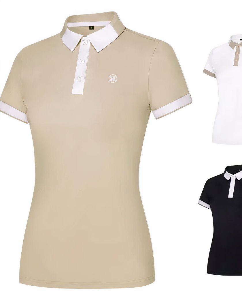 Ce polo de golf à manches courtes pour femme séchage rapide est un modèle au design simple et élégant avec ses tours de manches, devant de col et pattes de fermeture de couleur différente : cela apporte un côté élégant et rehausse le classique du polo tout en délicatesse. La coupe ajustée ajoute un brin de féminité à l'ensemble.
