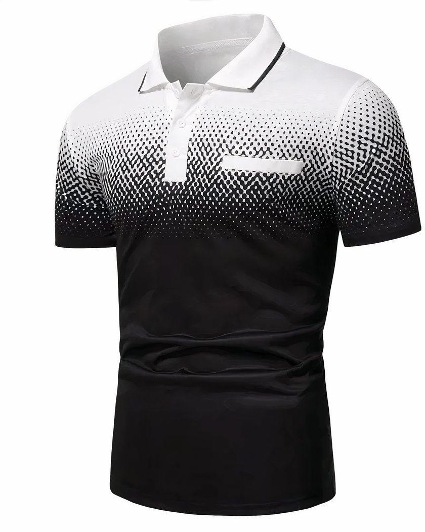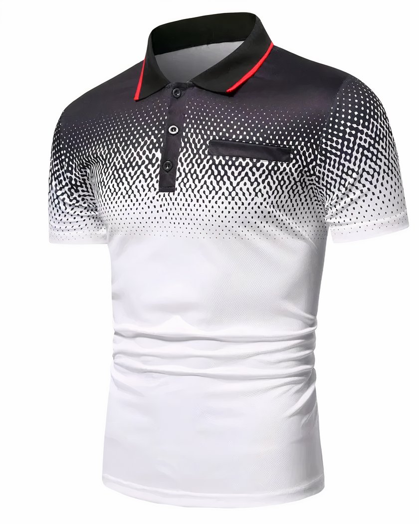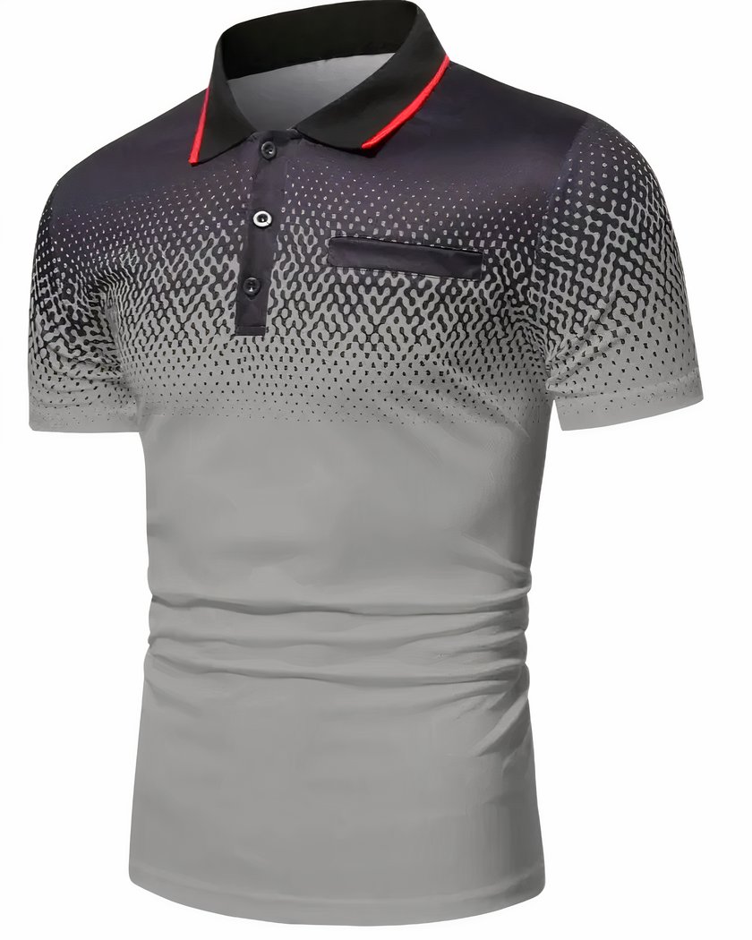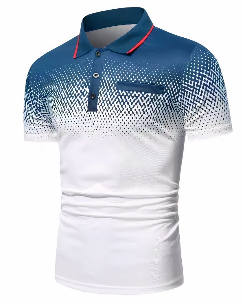 Ce polo de golf à fausse poche pour homme est doté d'un design relativement ajusté mais qui vous laissera un grande liberté de mouvements : il est extensible et de ce fait très confortable. Le dégradé de couleurs sur le haut du torse est original et fait ressortir la fausse poche et le liseré au bord du col. La fausse poche est assortie à la patte de boutonnage.
