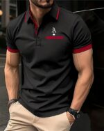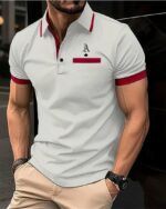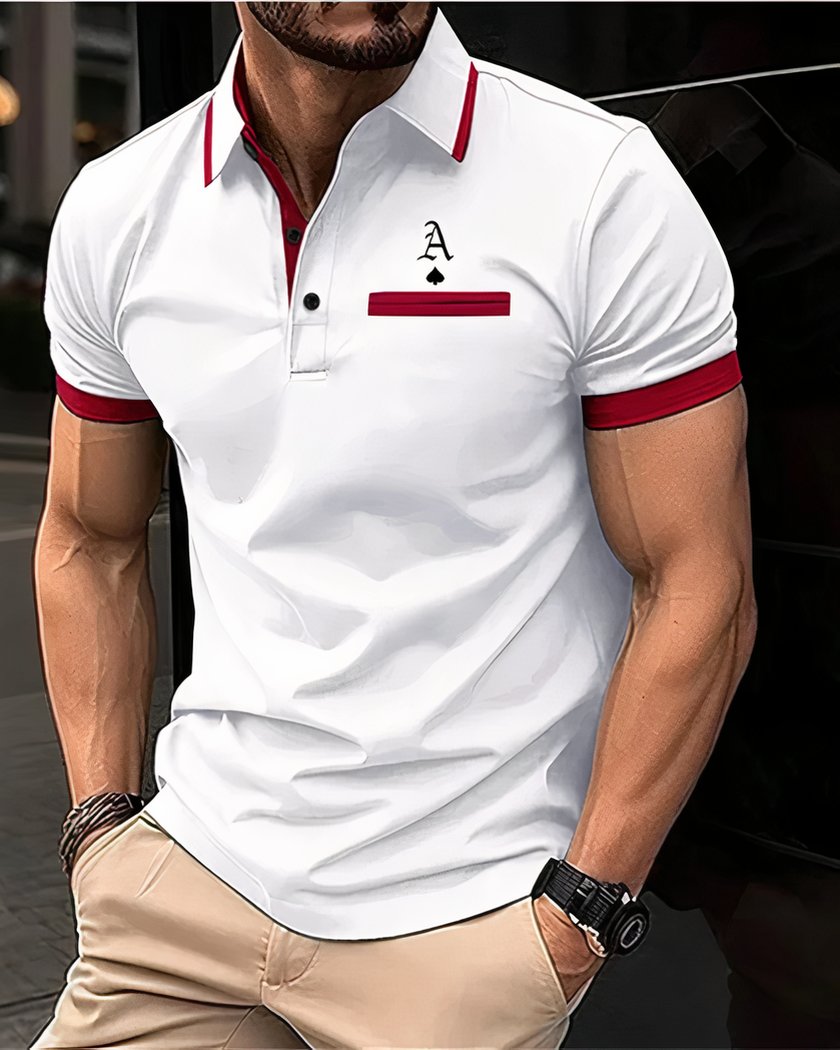 Ce polo de golf à ornements rouges pour homme est très élégant : c'est parfait sur les greens d'autant qu'une lettre A à la forme manuscrite qui surmonte un pique est ajoutée aux ornements rouges et apporte encore une note chic à ce polo. Son design ajusté permettra de mettre le buste en valeur. Il a été conçu pour être porté plutôt l'été.