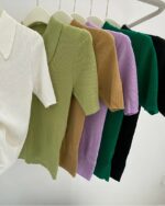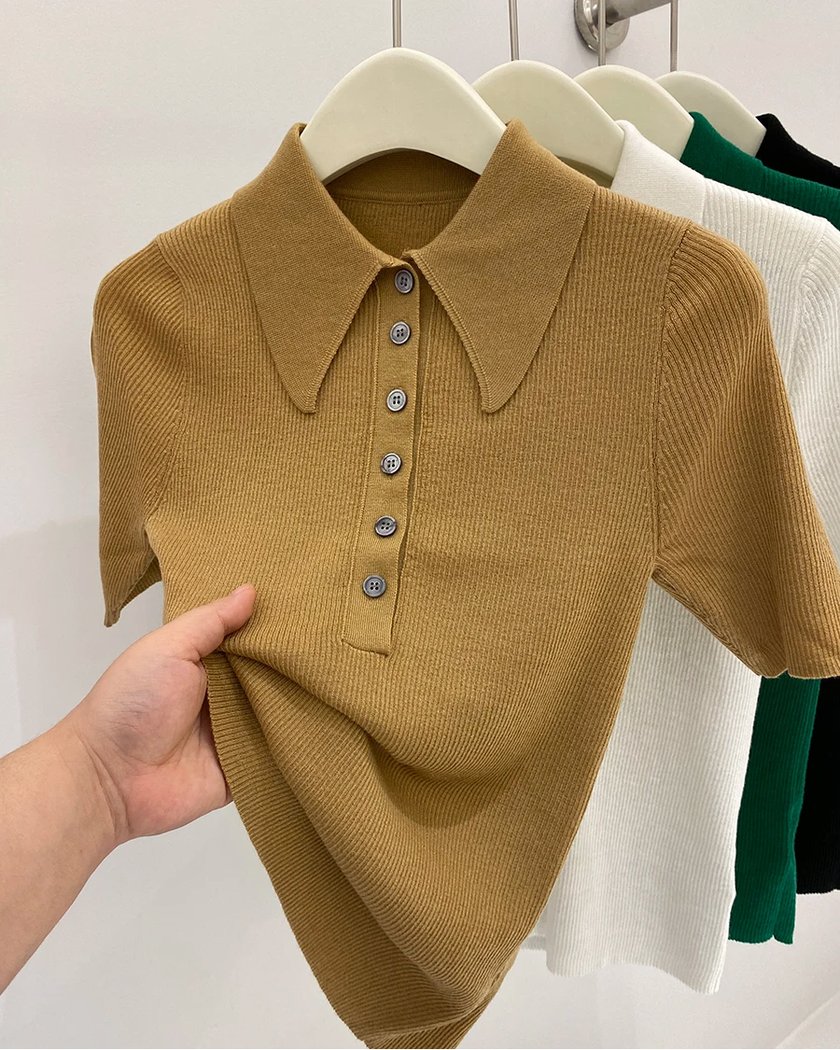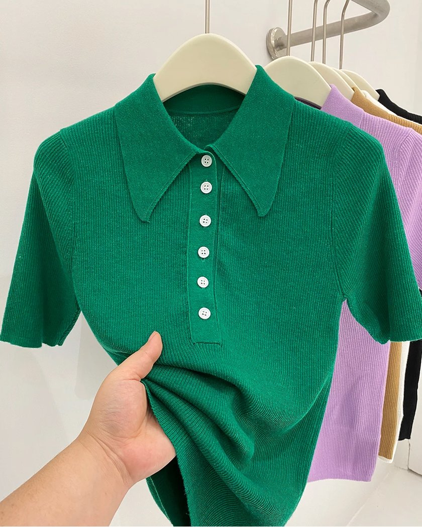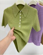 Polo à manches courtes pour femme en tricot de laine mérinos