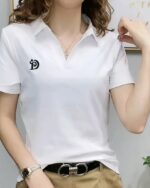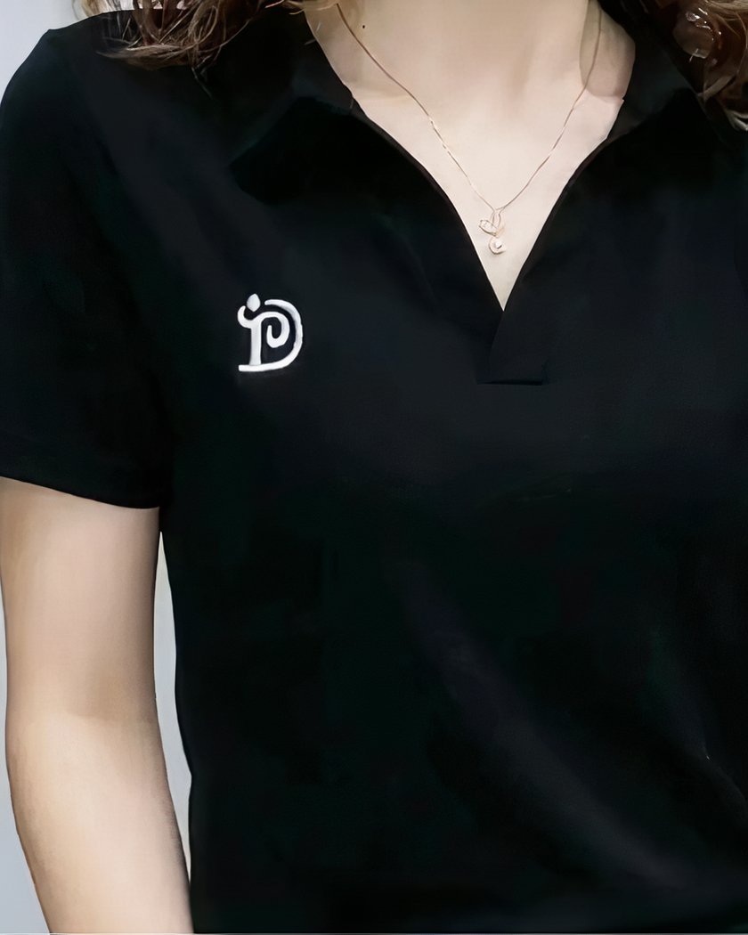 Une incrustation représentant la lettre D se trouve sur le haut à droite du polo. Ceci apporte un style sportif et décontracté. Le col et le décoleté de ce polo sont esthétiques. Il n'y a pas de boutons pour un style minimaliste. Polyvalent et intemporel, ce polo à manches courtes pour femme est un indispensable de votre dressing.