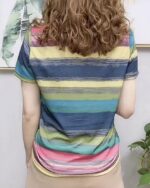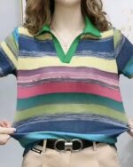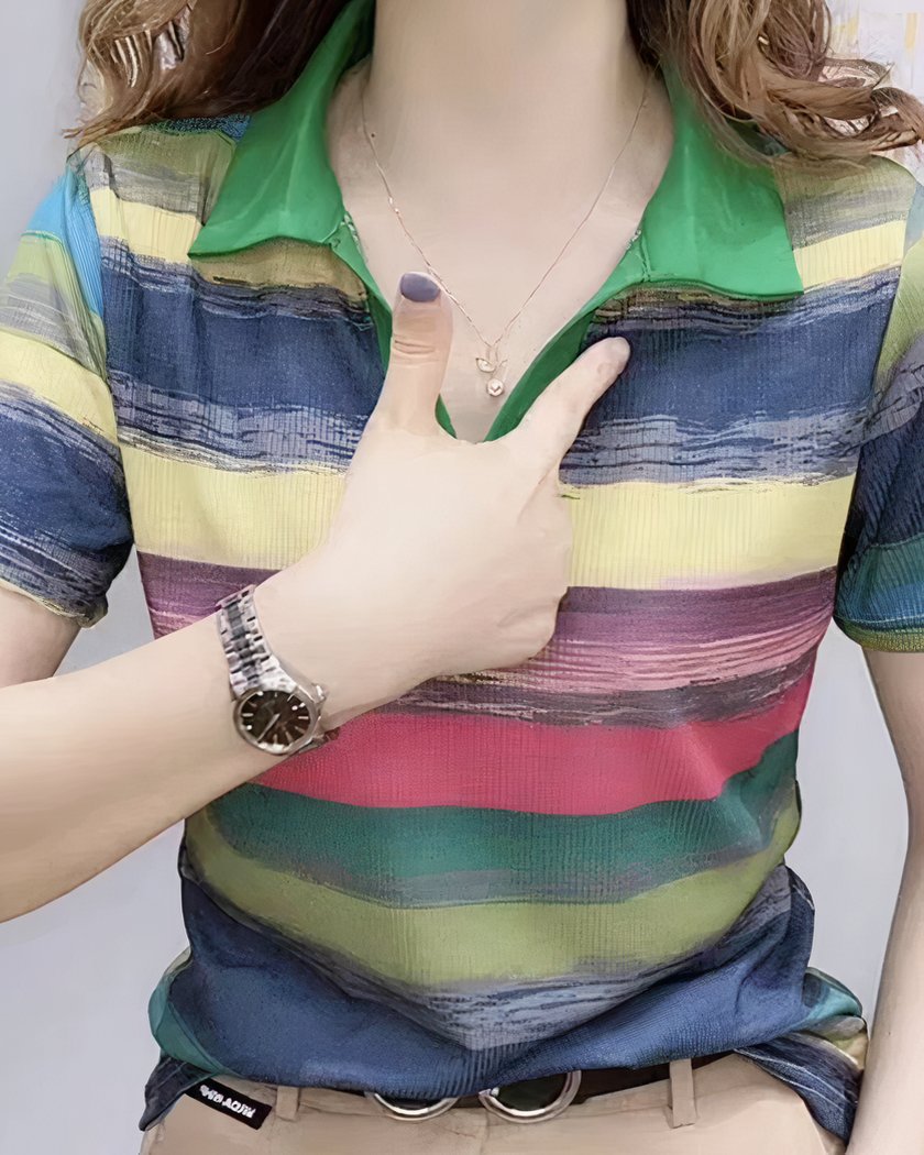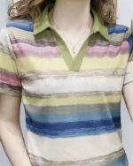 Polo à manches courtes pour femme à rayures arc-en-ciel