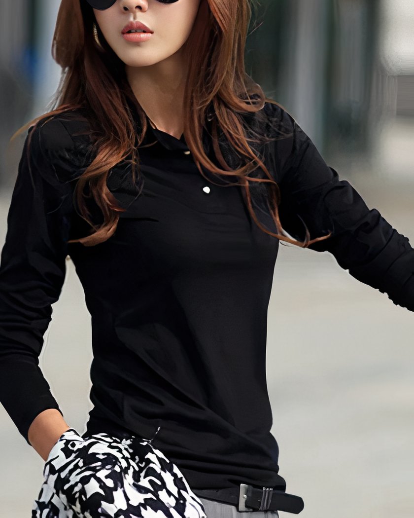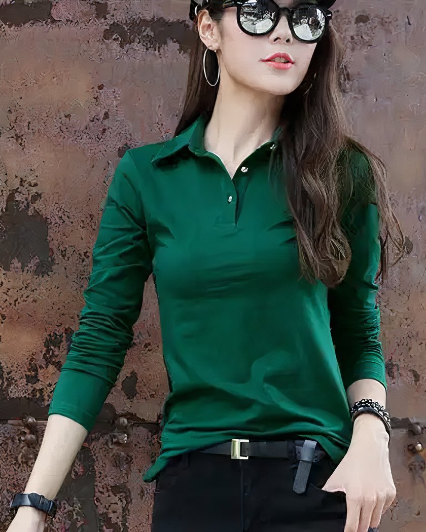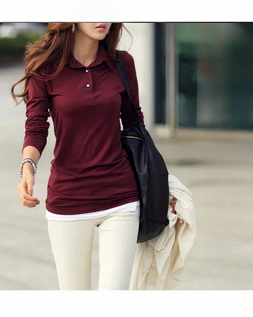 Doté d'un col classique et de boutons sur le devant, ce polo peut être porté de manière décontractée avec un jean ou plus habillée avec une jupe ou un pantalon de tailleur. Les manches longues ajoutent une touche de sophistication et permettent de rester au chaud lors des journées fraîches de l'hiver et des saisons intermédiaires.