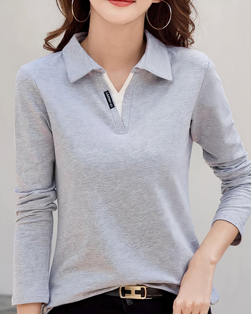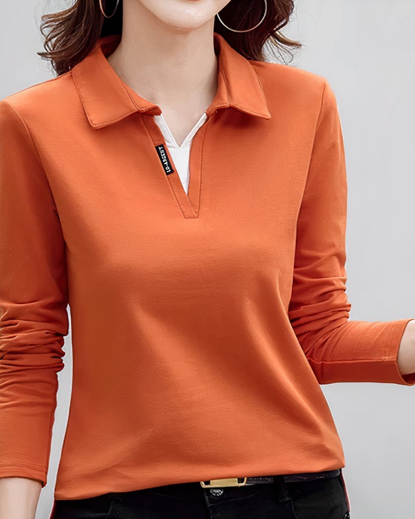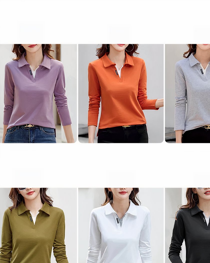 Polo manches longues pour femme, en coton et 6 couleurs