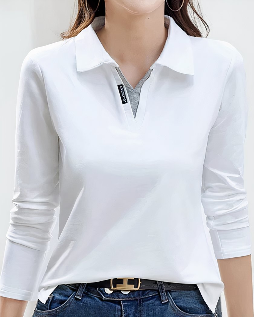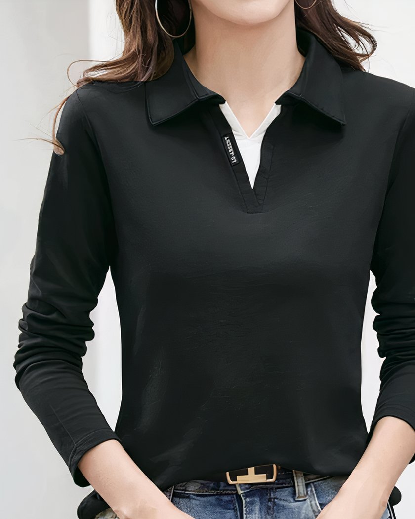 Parfait pour les journées fraîches ou les soirées plus décontractées, ce polo est un incontournable de toute garde-robe féminine. Disponible en six couleurs différentes, ce polo s'adapte à tous les goûts et toutes les occasions. Que vous préfériez le classique noir ou blanc, ou que vous optiez pour des teintes plus vives comme le rouge ou le bleu, vous trouverez forcément la couleur qui vous convient.