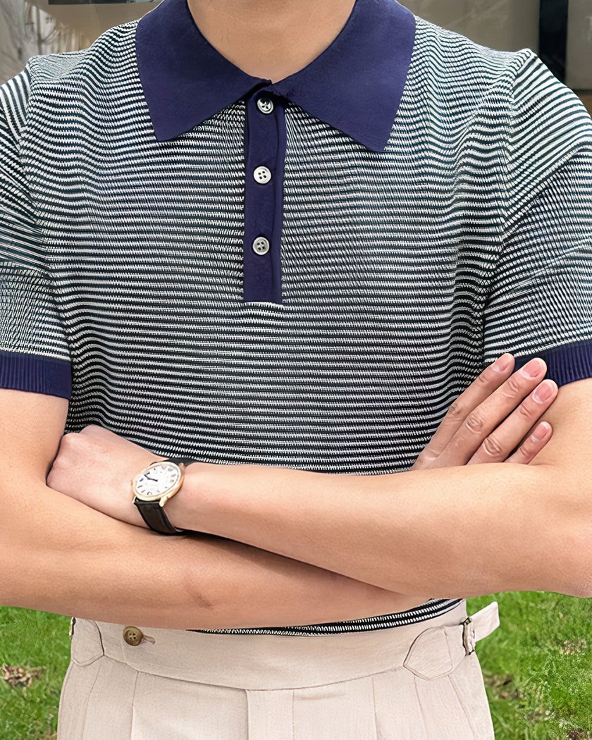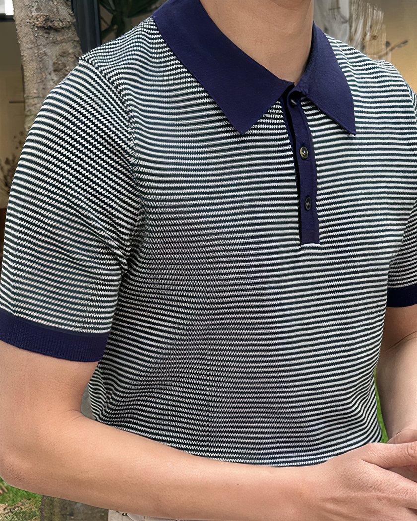 Ce polo marinière pour homme a de fines rayures, ce qui crée un effet visuel hypnotisant et très original. Avec son col polo classique et ses manches courtes, ce polo est parfait pour les journées chaudes d'été ou pour être superposé sous une veste légère lors des soirées fraîches. Fermez les trois boutons pour un look raffiné ou ouvrez-les pour vous donner un style plus négligé tout en étant toujours élégant.