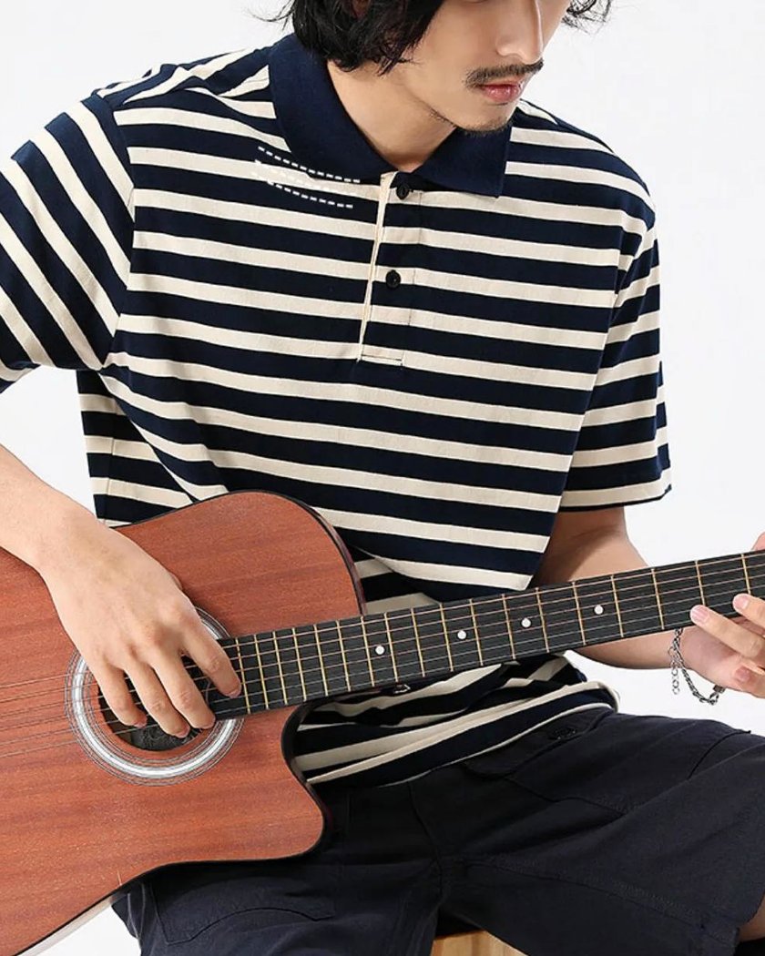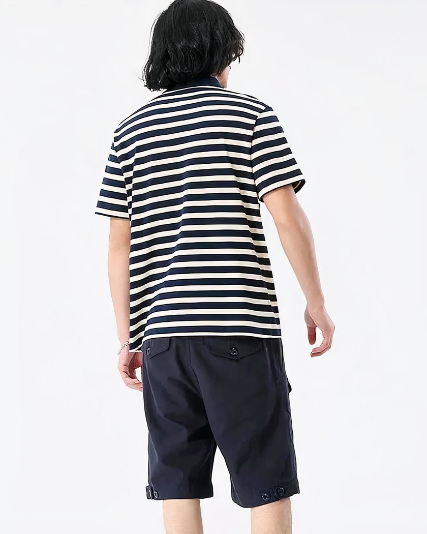 Ce polo marinière présente des rayures égales et une coupe ample ce qui lui confère son aspect rétro. Un vêtement à la fois classique et intemporel, il sera parfait pour toutes les situations décontracté ou vous souhaitez ajouter une touche de style. Avec son col polo classique il vous offre une allure élégante et est un vrai incontournable de la garde-robe masculine.