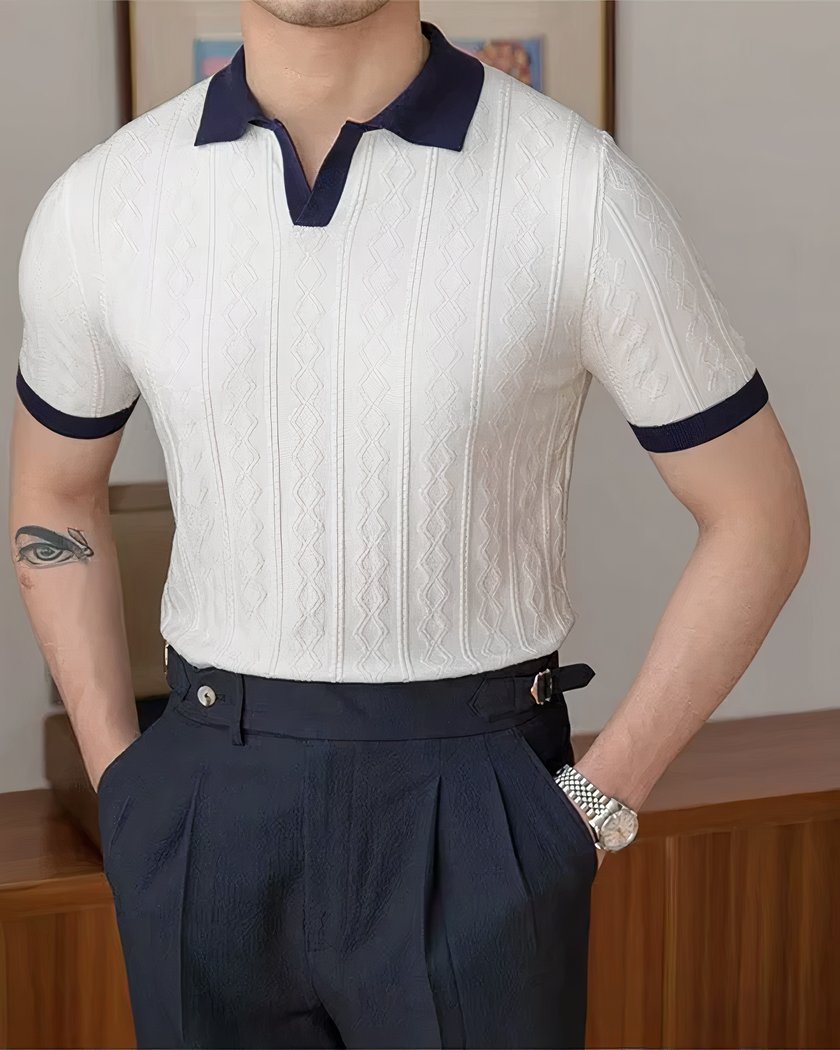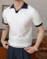 Disponible en deux coloris, ce polo sans boutons coupe serrée pour homme est un incontournable de la garde-robe masculine. Confortable, élégant et facile à entretenir, c'est un choix sûr pour tous les hommes soucieux de leur style. Que ce soit pour une sortie entre amis, une journée au bureau ou une soirée spéciale, ce polo saura vous accompagner avec style et élégance.