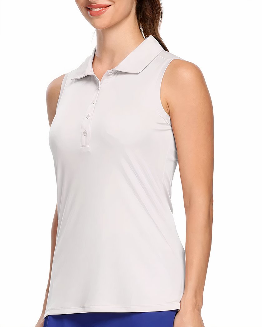 Sa conception sans manches permet une liberté de mouvement totale, idéale pour les entraînements intenses ou les compétitions. Son design élégant et féminin ajoute une touche de style à votre tenue de sport. Que vous pratiquiez le tennis, le golf, le running ou toute autre activité sportive, ce polo sera votre allié pour rester performante tout en étant à l'aise.