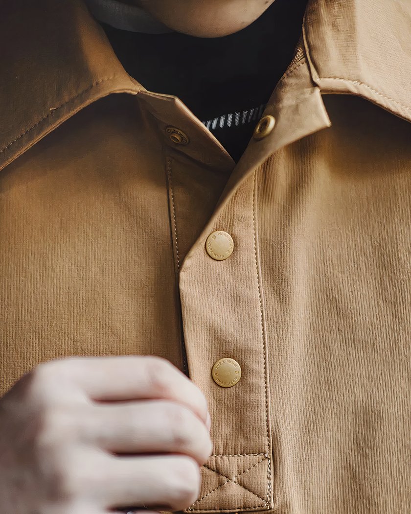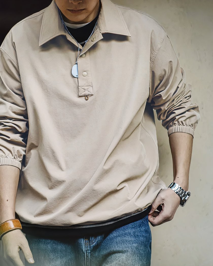 Le col polo traditionnel et les boutons sur le devant apportent une touche élégante à ce polo vintage. Les boutons se clips pour plus d'aisance. Le petit plus de ce polo vintage c'est qu'il comporte des élastiques au bas des manches et des cordons de serrage réglables sur le bas du buste. Ces détails ajoutent de l'amplitude à la coupe déjà large et complètent le style rétro.