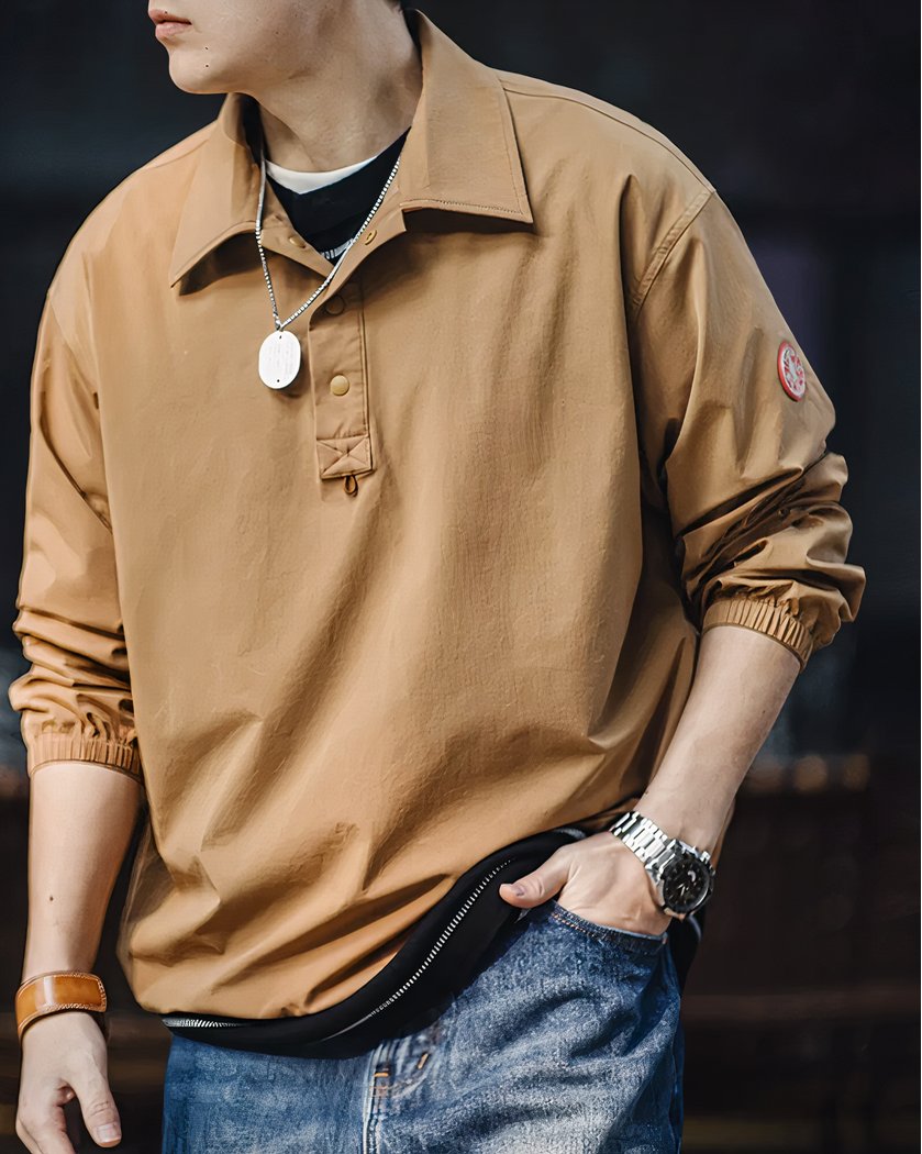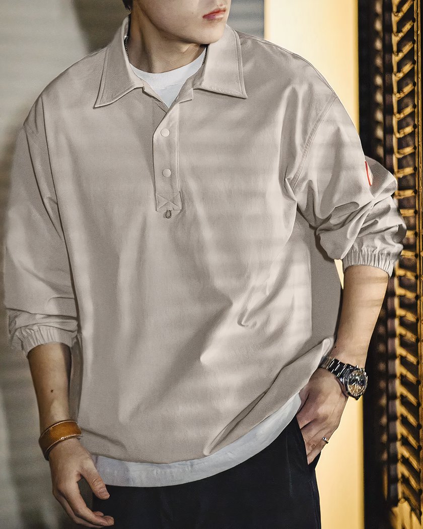 Notre polo vintage ample à manches longues pour homme est fait en polyamide ce qui le rend à la fois confortable à porter et lui donne un certain tombé. Sa coupe ample vous offre une grande liberté de mouvement et ses manches longues ajoutent une touche de sophistication à ce vêtement classique.