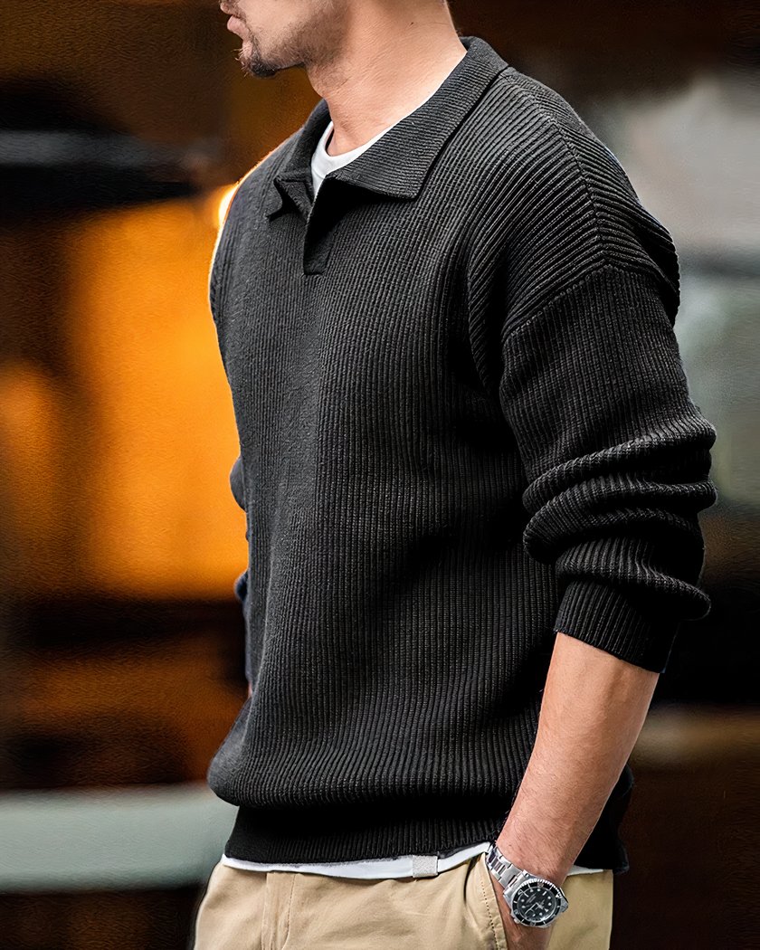 Notre pull polo vintage en maille pour homme est un vêtement intemporel et élégant qui apportera une touche de style rétro à votre garde-robe. Son design sans boutons lui confère un look décontracté et moderne, parfait pour les hommes soucieux de leur style. Le col polo ajoute une touche sophistiquée à ce pull.