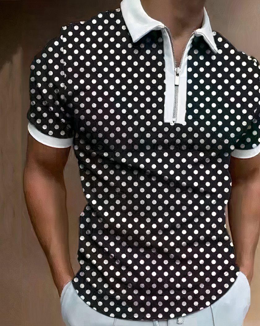 Notre polo zippé homme à pois est un vêtement élégant et tendance qui saura apporter une touche de style à votre tenue. Les pois ajoutent une touche rétro très actuelle, ce qui vous donnera beaucoup d'allure. Polyvalent et facile à assortir, il se porte aussi bien avec un jean pour un look casual ou avec un pantalon chino pour une allure plus habillée.