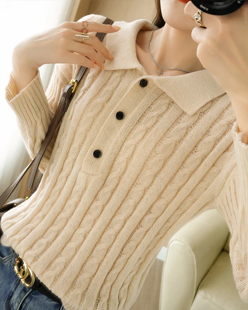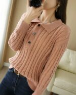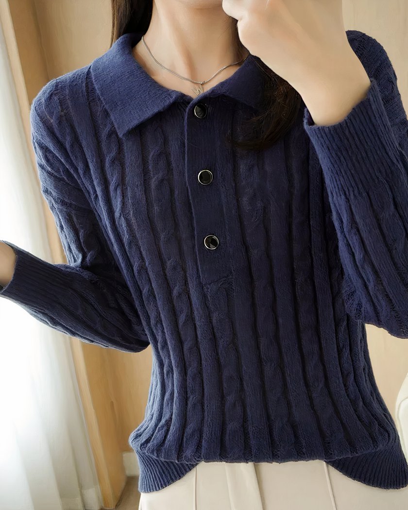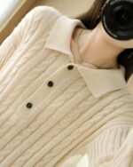 Notre pull polo en laine et cachemire pour femme est conçu avec des matériaux de haute qualité comme le cachemire connu pour se douceur et la chaleur qu'il apporte. Le mélange laine et cachemire, deux laines au final, permet d'obtenir un matériau d'une parfaite tenue et une douceur incomparable. Le fait d'avoir tricoté ce pull en deux mailles différentes, torsade et plat, apporte un côté encore plus chaleureux à ce pull.