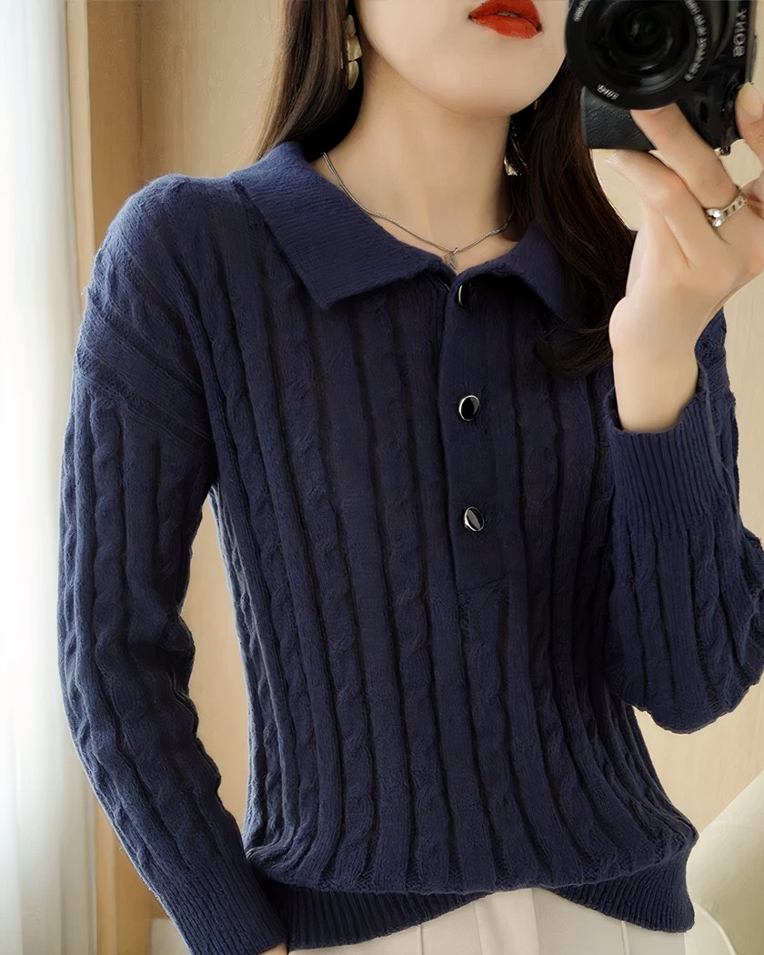 Notre pull polo en laine et cachemire pour femme est non seulement un pull de qualité mais il est très tendance de par son design polo. Le col et le boutonnage amènent une certaine fraîcheur de genre et lui permet d'être apprécié de femmes de tous âges. Les couleurs que nous proposons sont tendance et intemporelles, tendres pour les claires et incontournable pour le bleu marine, faciles à marier.