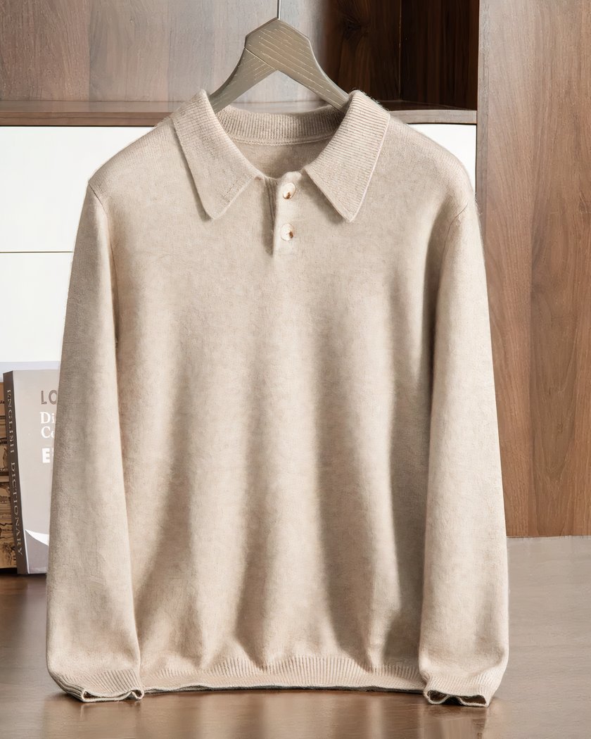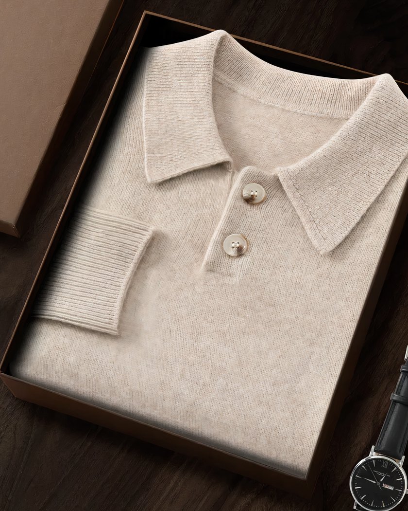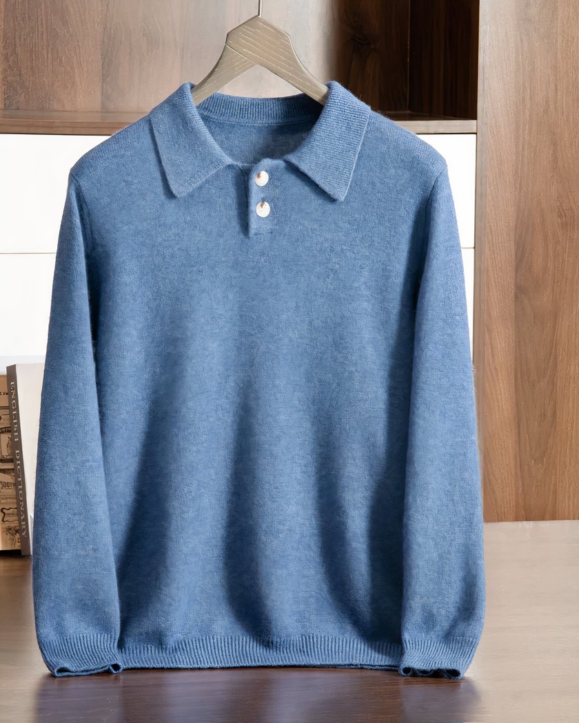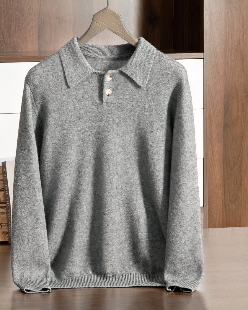 Pull polo en cachemire pour homme à deux boutons