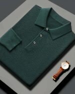 Ce pull polo en laine peignée pour homme avec sa matière de première qualité est un produit luxueux aux finitions exemplaires comme la patte de boutonnage au liseré impeccable et les trois petits boutons nacrés discrets. La finesse de ce pull polo et son design lui confèrent une élégance un peu vintage, un look qui reprend les codes anciens et redevient tendance aujourd'hui.
