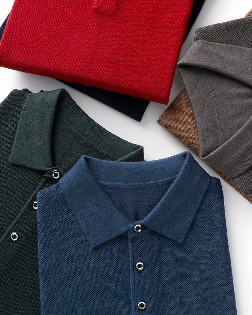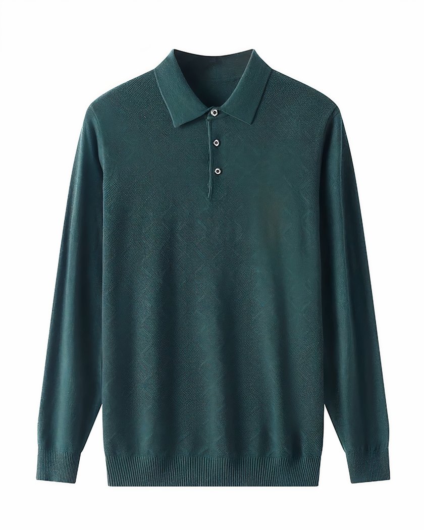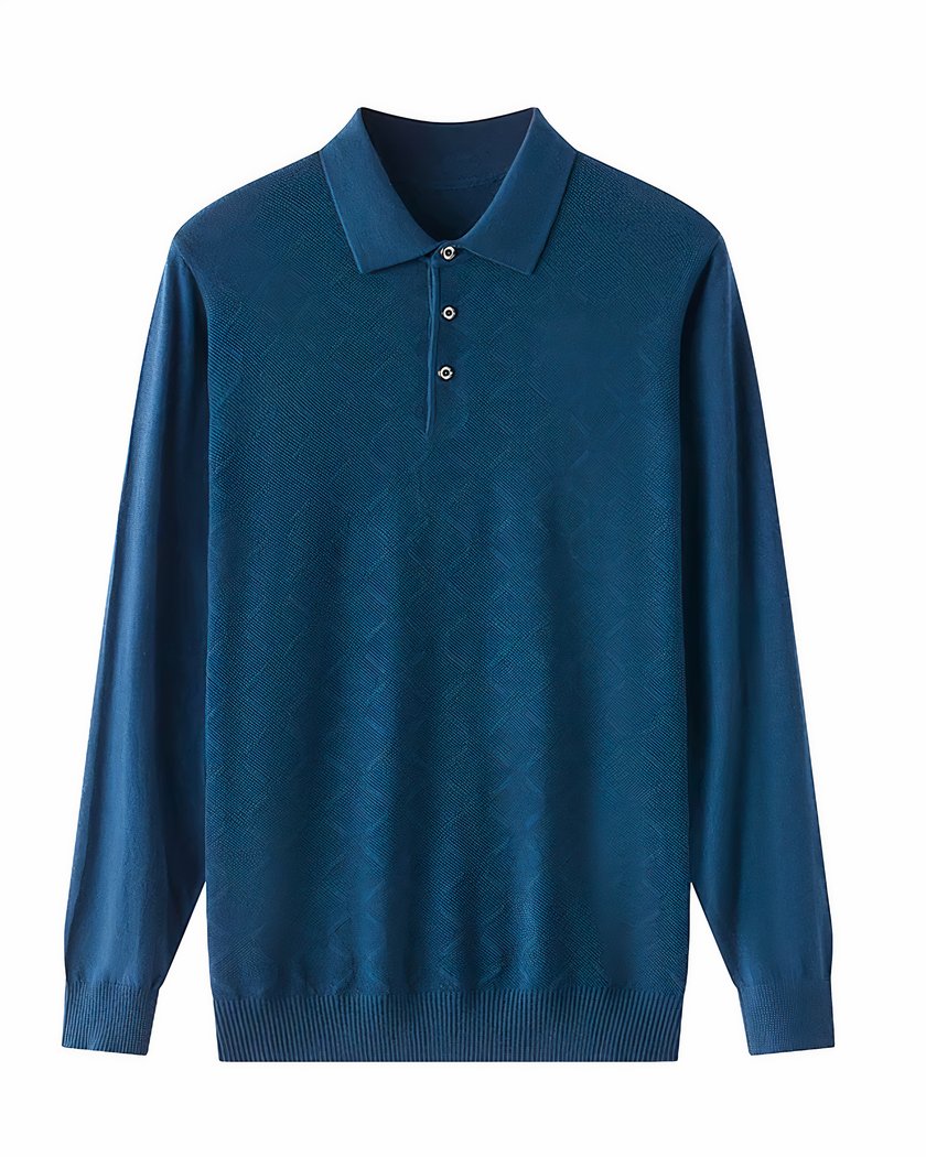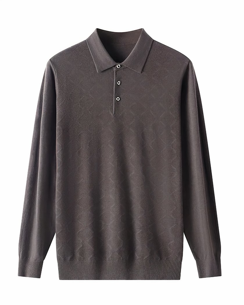 Ce pull polo en laine peignée pour homme est conçu avec une laine très fine travaillée pour éliminer ls fibres les plus courtes, qui piquent, et les impuretés : on obtient une laine aux fibres rigoureusement alignées, douce et lisse, qui ne bouloche pas et de grande qualité. On retrouve donc cette qualité dans le produit fini comme ici avec un motif tricoté en losange discret et tout en finesse.