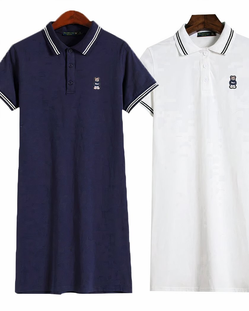 Cette robe polo en coton pour femme est fabriquée dans ce que l'on appelle un jersey de coton, la fibre naturelle est comme tricotée dans ce tissu. Cela donne à la robe une douceur et un confort incomparables. Le soin particulier apporté aux finitions comme les coutures est à souligner : le petit ours brodé en écusson ne dira pas le contraire.