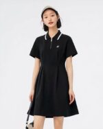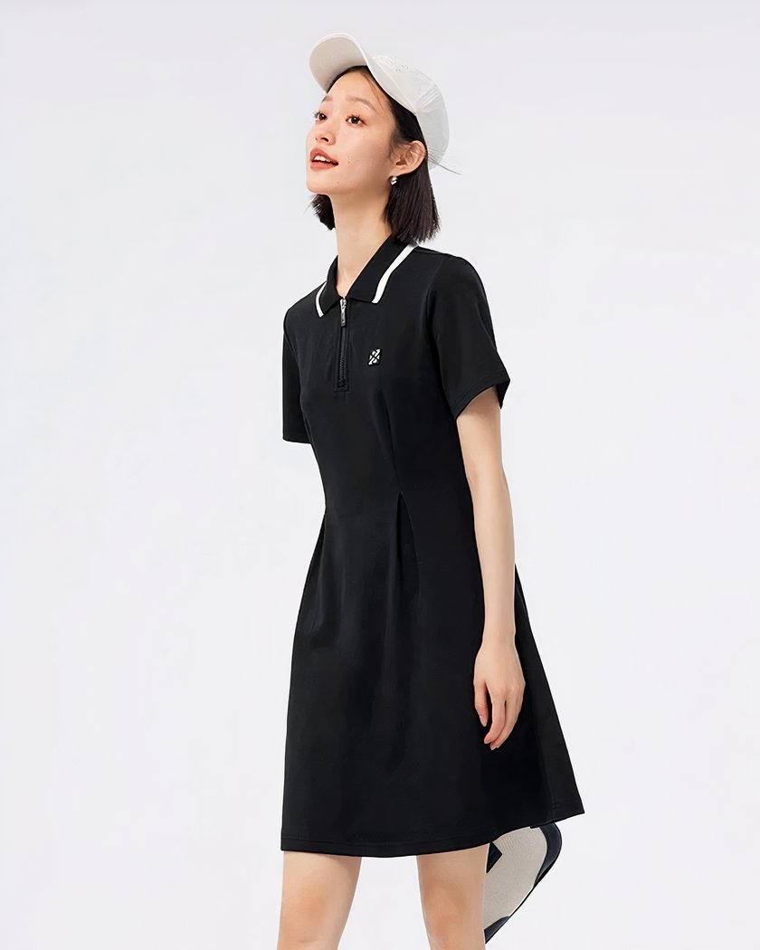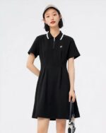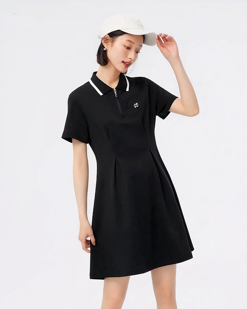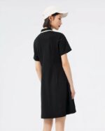 Cette robe polo pour femme col rayé est agrémentée de pinces devant et dos : elles partent de sous la poitrine jusqu'à la taille pour donner de l'ampleur en bas et des plis assez souples. Elles marquent un peu la taille également pour une touche féminine. Les manches sont courtes et assez larges pour l'ampleur des mouvements.