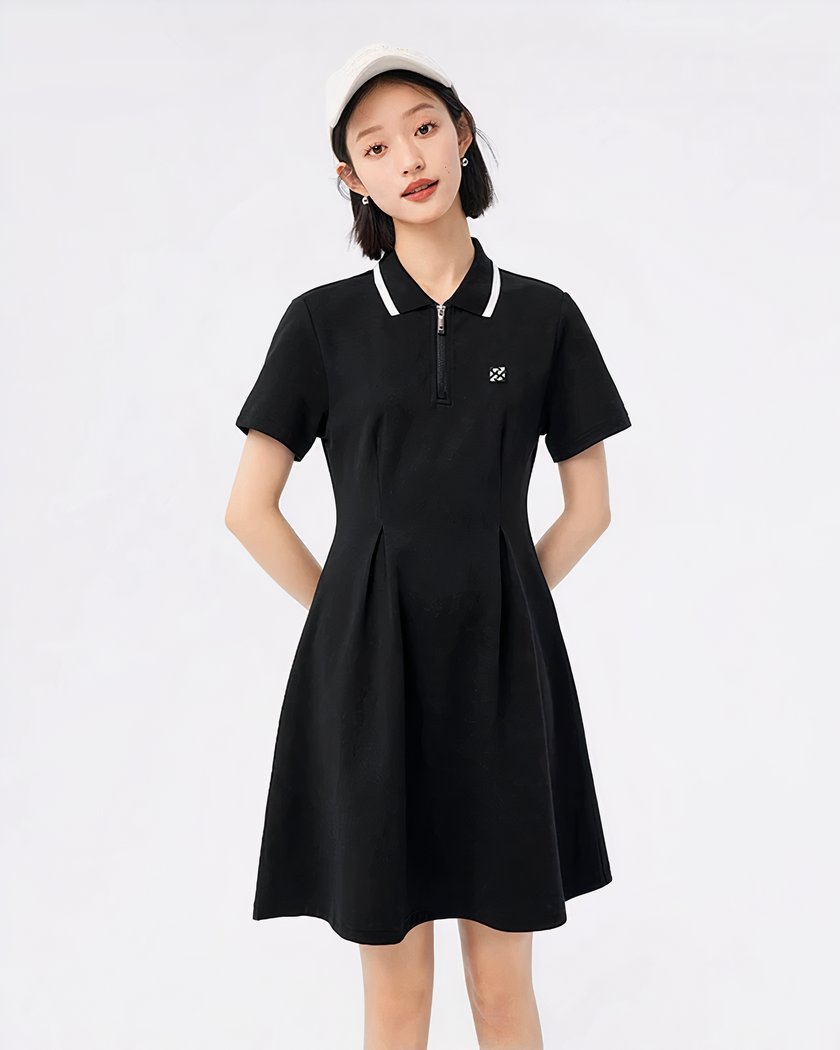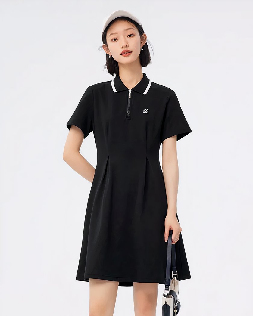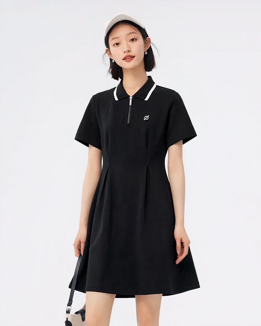 Cette robe polo pour femme col rayé est fabriqué avec un coton mélangé qui lui donne une légère élasticité et une grande douceur pour un confort incroyable. Le col a une large bande de couleur différente tout au tour, d'où le nom col rayé, le boutonnage habituel du polo est ici remplacé par un zip bien pratique.